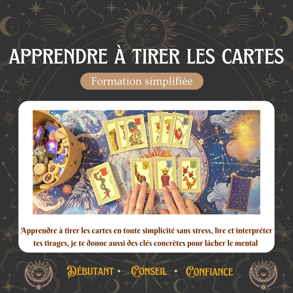 Apprendre à tirer les cartes en toute simplicité sans stress, lire et interpréter tes tirages, je te donne aussi des clés concrètes pour lâcher le mental et surtout je réponds à toutes tes questions pour lever le voile sur ce qui te bloque.