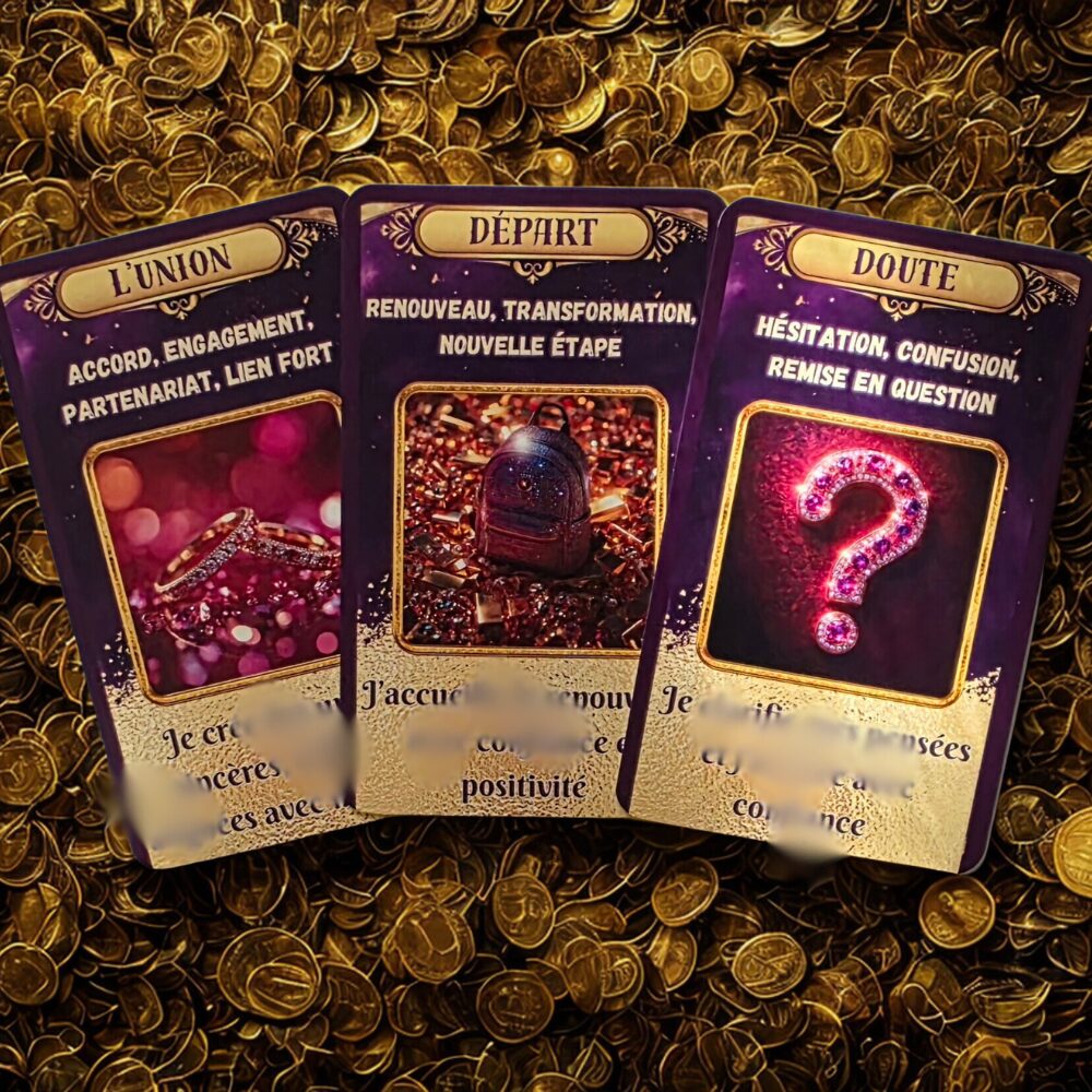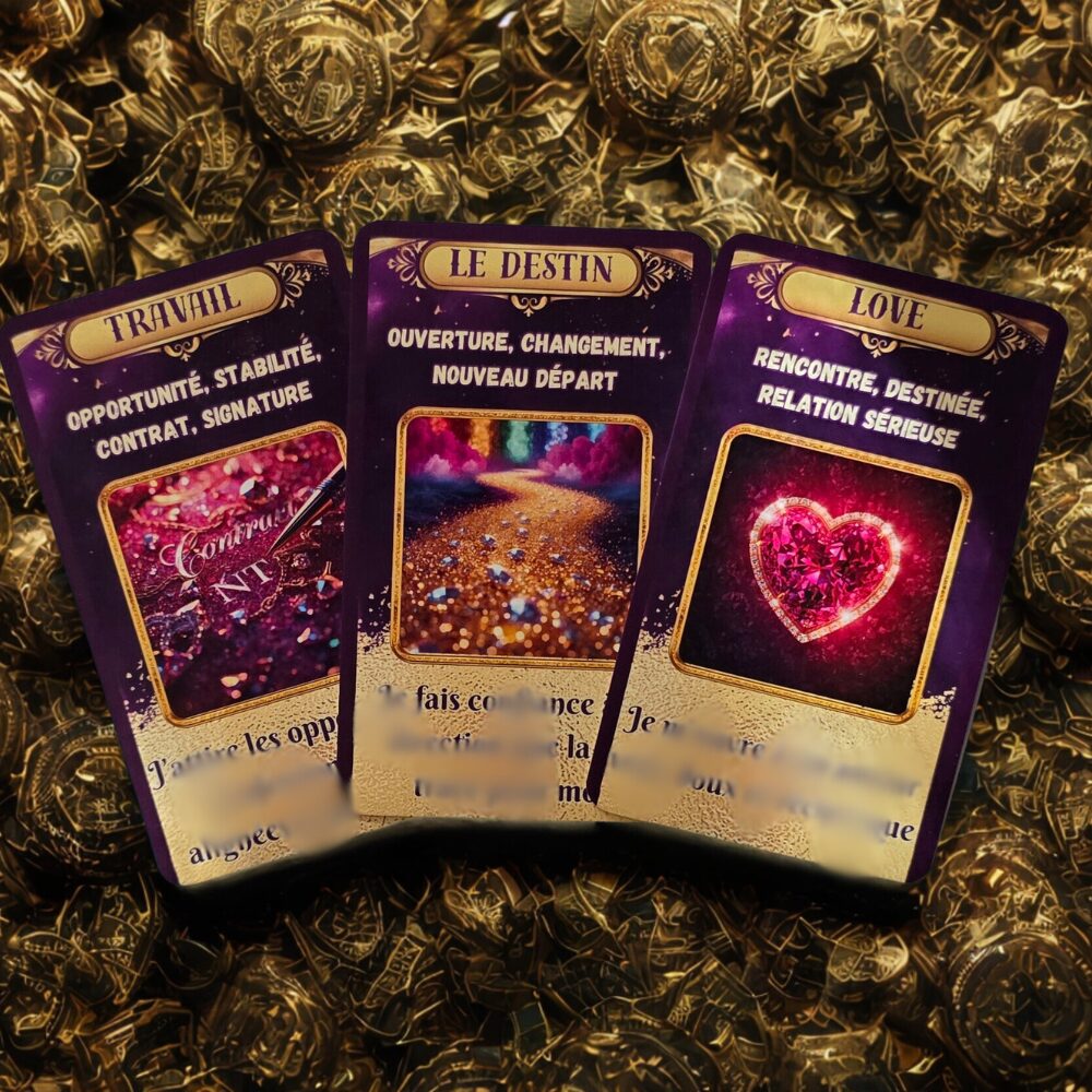 Chaque carte porte une énergie, un message divinatoire et un mantra vibratoire destiné à être lu, ressenti, incarné.